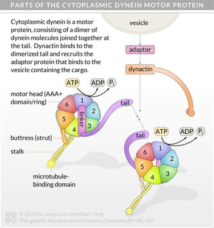 Dynein is a family of cytoskeletal motor proteins that move along microtubules in cells. They convert the chemical energy stored in ATP to mechanical work. Dynein transports various cellular cargos, provides forces and displacements important in mitosis, and drives the beat of eukaryotic cilia and flagella.How does cytoplasmic dynein differ from flagellar dynein?