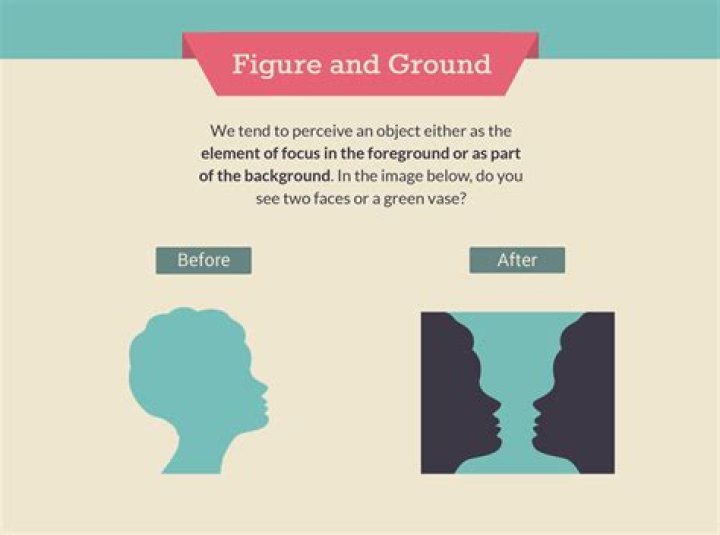 The figure-ground principle states that people instinctively perceive objects as either being in the foreground or the background. They either stand out prominently in the front (the figure) or recede into the back (the ground).