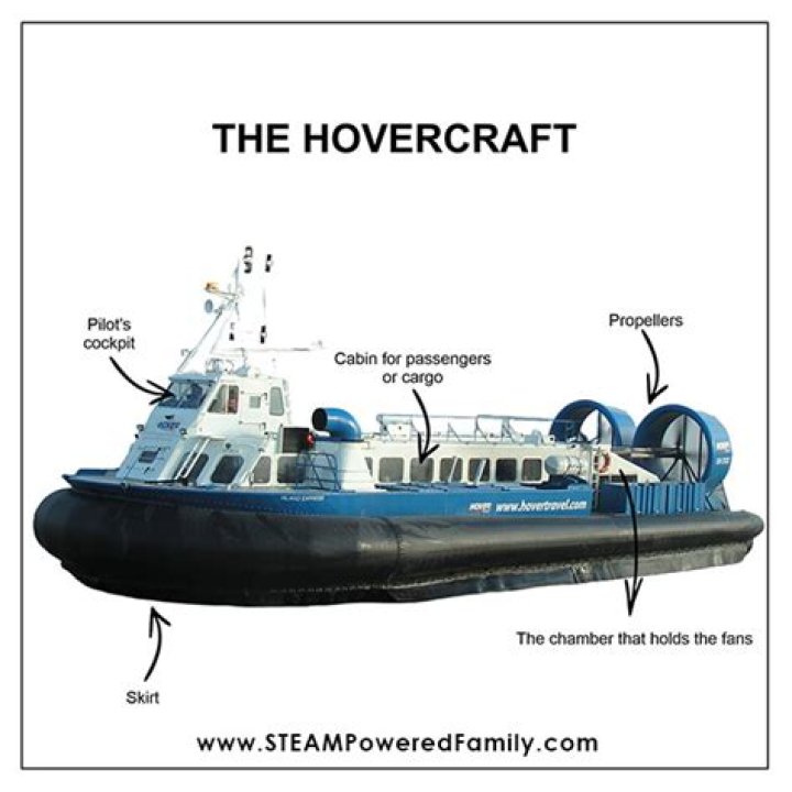 Hovercraft are one part boat, one part airplane and one part helicopter. It traps a cushion of air underneath itself and then floats along on top of it. This air cushion holds it high above waves and land obstructions, meaning it can travel on land or water.