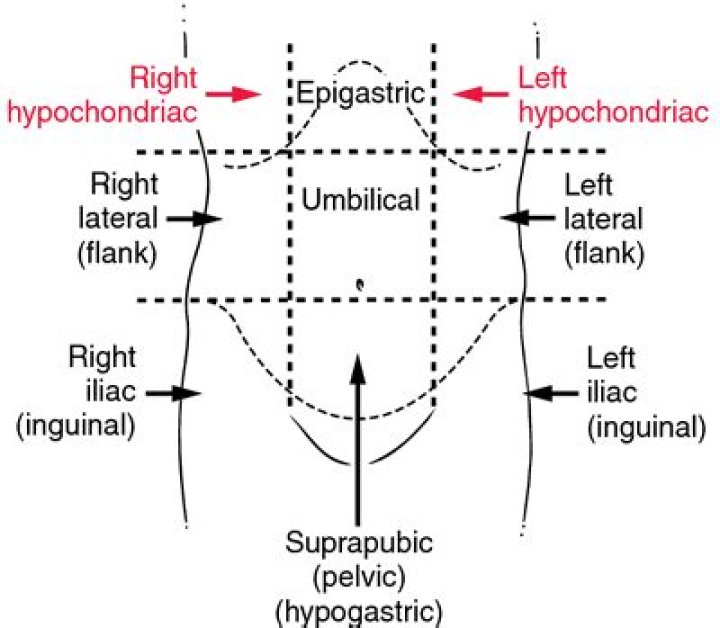 Pain in the left and right hypochondriac regions may occur with pulmonary or cardiac causes such as pneumonia, a myocardial infarction, or a pulmonary embolism. These may also present as chest pain and shortness of breath.