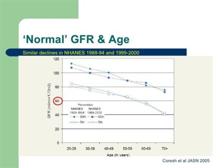 Following the classical way, we can assert that normal GFR values are largely over 60 mL/min/1.73 m2 in healthy subjects, at least before the age of 70 years. However, we know that GFR physiologically decreases with age, and in adults older than 70 years, values below 60 mL/min/1.73 m2 could be considered normal.
