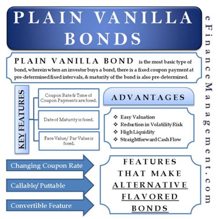A Plain Vanilla Bond is the simplest form of bond. It comes with predefined features and does not offer any special features. The term plain vanilla refers to the simplicity of the financial instrument. A plain vanilla bond comes with predefined features such as maturity date, coupon rate, issue price, and face value.