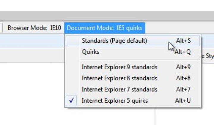 - In the menu that opens, select the “Standards” option that corresponds with your version of Internet Explorer. …