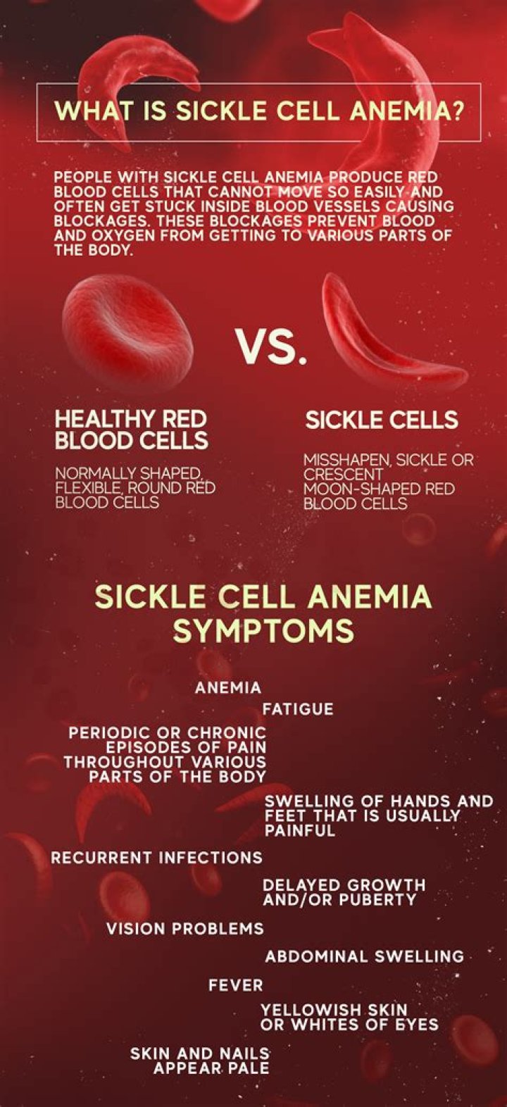 avoid very strenuous exercise – people with sickle cell disease should be active, but intense activities that cause you to become seriously out of breath are best avoided. avoid alcohol and smoking – alcohol can cause you to become dehydrated and smoking can trigger a serious lung condition called acute chest syndrome.