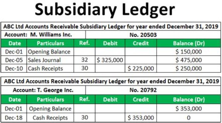 Two common subsidiary ledgers: Accounts receivable subsidiary ledger where data relating to individual buyers are kept. Accounts payable subsidiary ledger is due where data relating to individual creditors are kept.