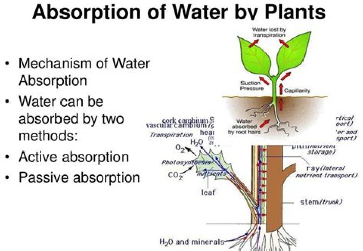 A plant absorbs water through its roots, stem and leaves; although the root is the main absorbing organ. Aquatic plants use their submerged body surfaces for absorption. In case of lower plant groups, the function of root is done by unicellular to multi cellular rhizoids.