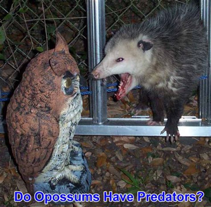Predators include owls, hawks, red foxes, cats, dogs and humans. Opossums protect themselves from predators by “playing dead,” since most predators will not eat an animal that is already dead.