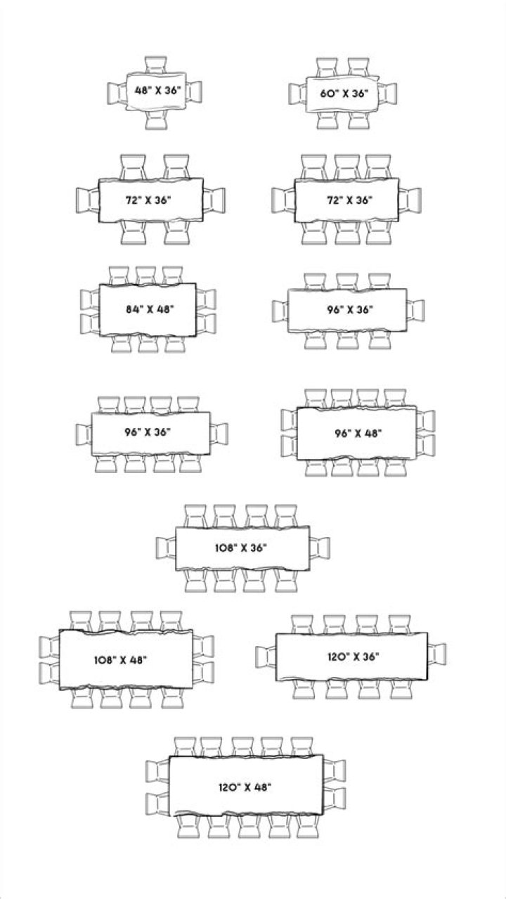 A standard, rectangular 10-person table measures 96-inches long.
