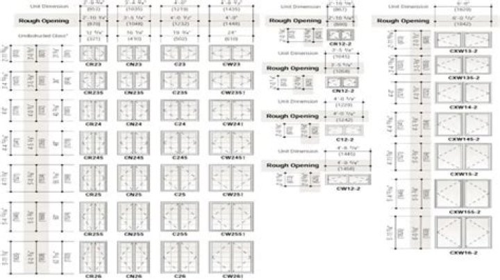 For example: a 2030 unit has a rough opening of two feet wide by three feet tall. A 2636 unit has a rough opening of two feet six inches wide by three feet six inches high. Width is always first, followed by the height. The actual unit dimension is always 1⁄2″ less than the rough opening.
