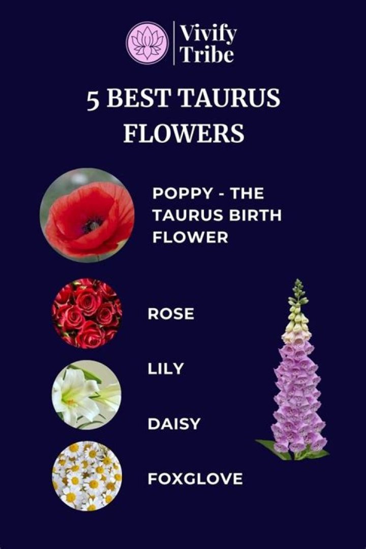 Taurus is ruled by Venus, which makes the natives of the sign loving and caring folks. Taurus Birth Flowers: Rose. Poppy.
