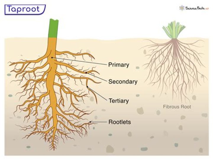 taproot, main root of a primary root system, growing vertically downward. Most dicotyledonous plants (see cotyledon), such as dandelions, produce taproots, and some, such as the edible roots of carrots and beets, are specialized for food storage. … This primary root is a taproot.