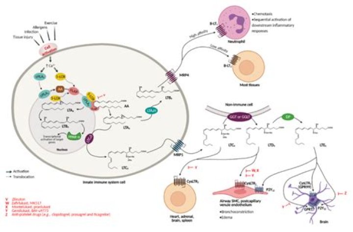 The lipoxygenase products (leukotrienes) have been demonstrated in many mammalian tissues including humans. They are widely distributed in the lungs, gut, uterus, kidneys, skin, heart and the liver.