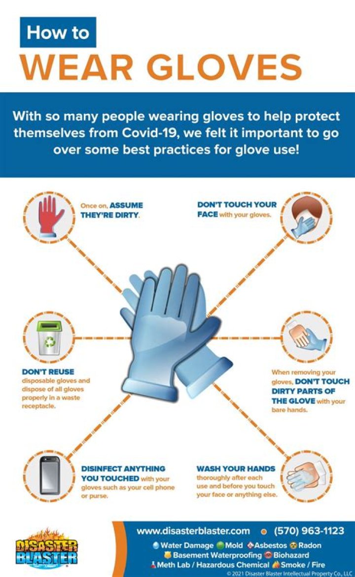It is important to wear gloves when working with hazardous chemicals and other materials because they protect our hands from infection and contamination. Protective gloves should be selected on the basis of the hazards involved. Nitrile gloves protect against most chemicals and infectious agents.What must he do before putting on his gloves?