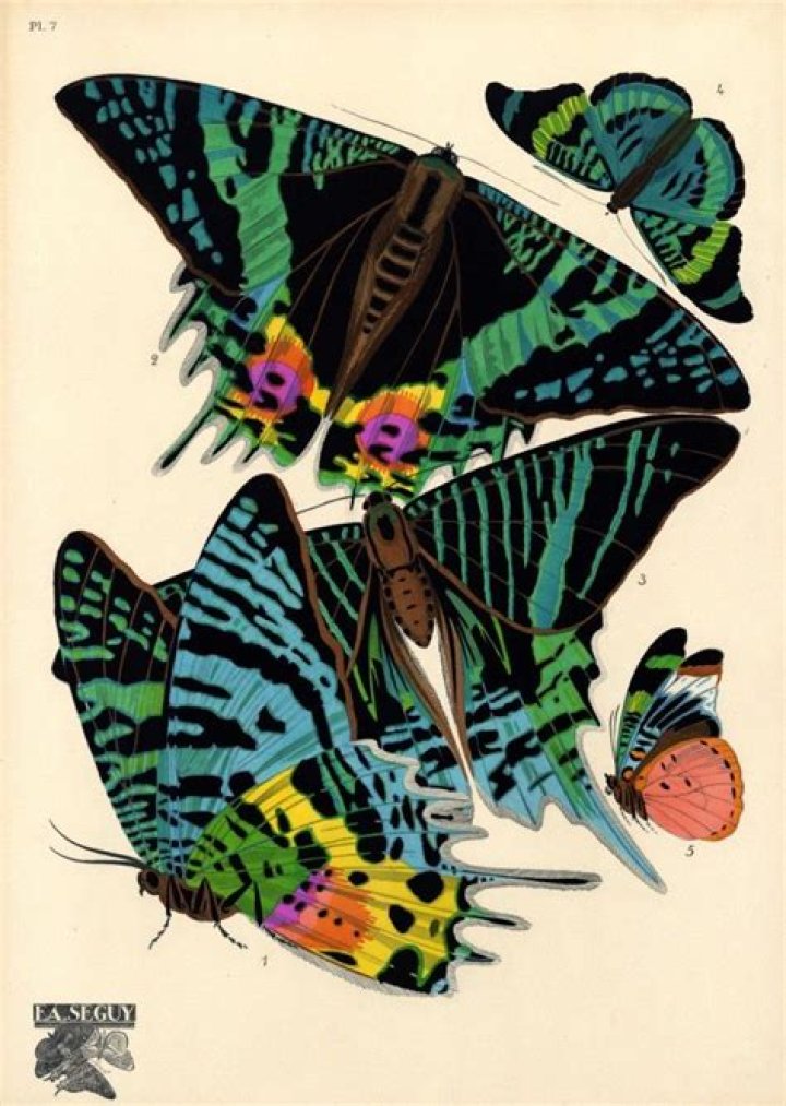 Seguy produced eleven albums of nature themed illustrations and patterns, drawing inspiration from papillons and other insects, flowers, foliage, crystals and animals. Seguy was one of few artists that successfully combined both Art Deco and Art Nouveau styles in his work.