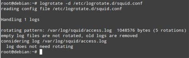 The only thing that logrotate records normally is in cat /var/lib/logrotate/status . If you’re running logrotate from cron and not redirecting the output, the output, if there is any, will go to email for whichever ID is running the cron job.