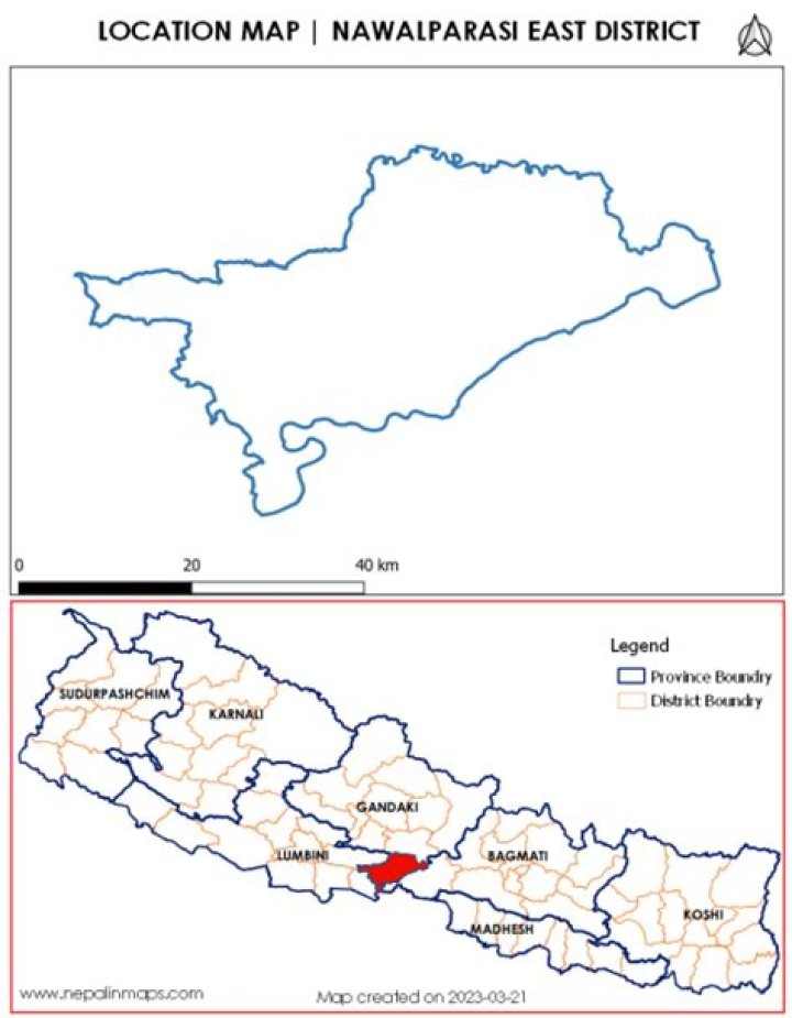ADMINISTRATIVE MAP – KAWASOTI, NAWALPARASI EAST, PROVINCE 4.What is the name of 77 district of Nepal?