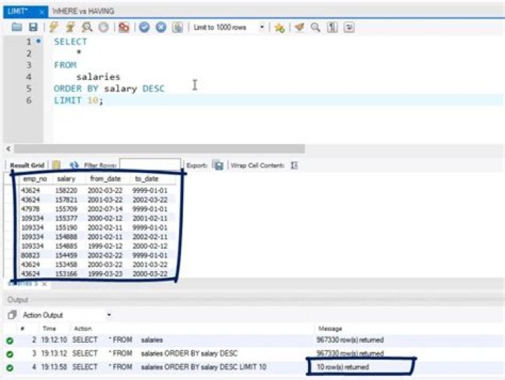 The SQL LIMIT clause constrains the number of rows returned by a SELECT statement. For Microsoft databases like SQL Server or MSAccess, you can use the SELECT TOP statement to limit your results, which is Microsoft’s proprietary equivalent to the SELECT LIMIT statement.What is limit and offset in SQL?