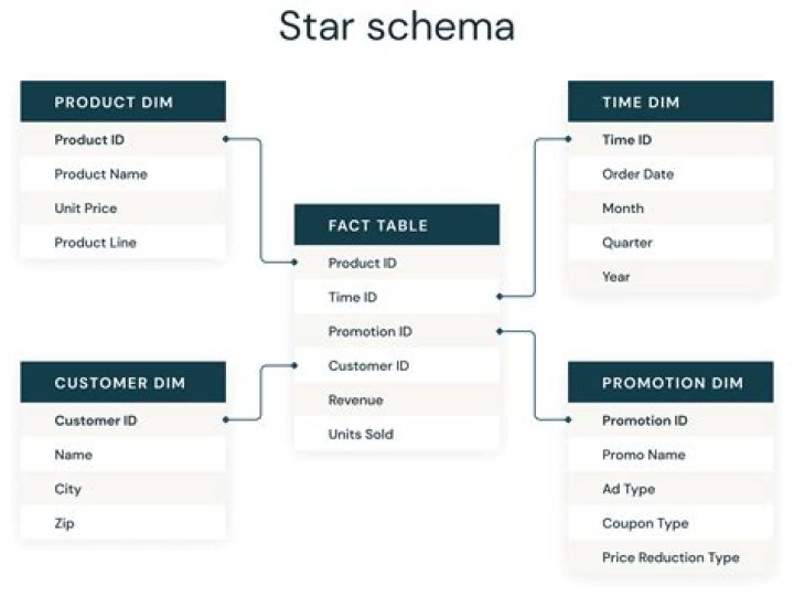 Although the diagram in this chapter shows a single fact table, a star schema can have multiple fact tables. A more complex schema with multiple fact tables is useful when you need to keep separate sets of measurements that share a common set of dimension tables.
