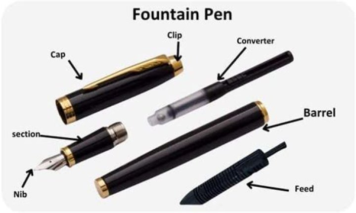 Tip or Nose Cone: Commonly referred to as the tip of the pen, the nose cone is a metal or plastic piece that holds the tip of the ink cartridge in position when the cartridge is extended for writing.