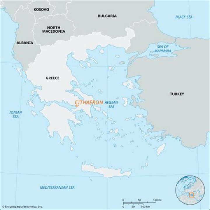 Cithaeron is famous in Greek mythology. There Actaeon was changed into a stag, Pentheus was torn into pieces by the Bacchantes, and the infant Oedipus was left to die. It was the scene of the mystic rites of Dionysus and of the festival of the Daedala in honour of Hera.