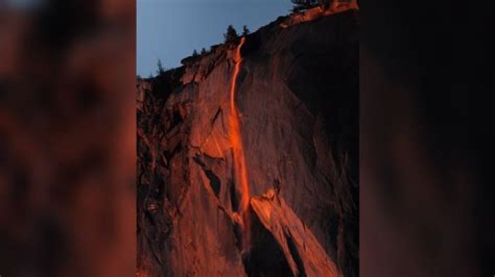 The firefall phenomenon requires sufficient snowfall, a warm enough temperature to melt the snow so that there is enough water to create the fall, a clear sky, and the right angle for the sunlight to illuminate the fall.
