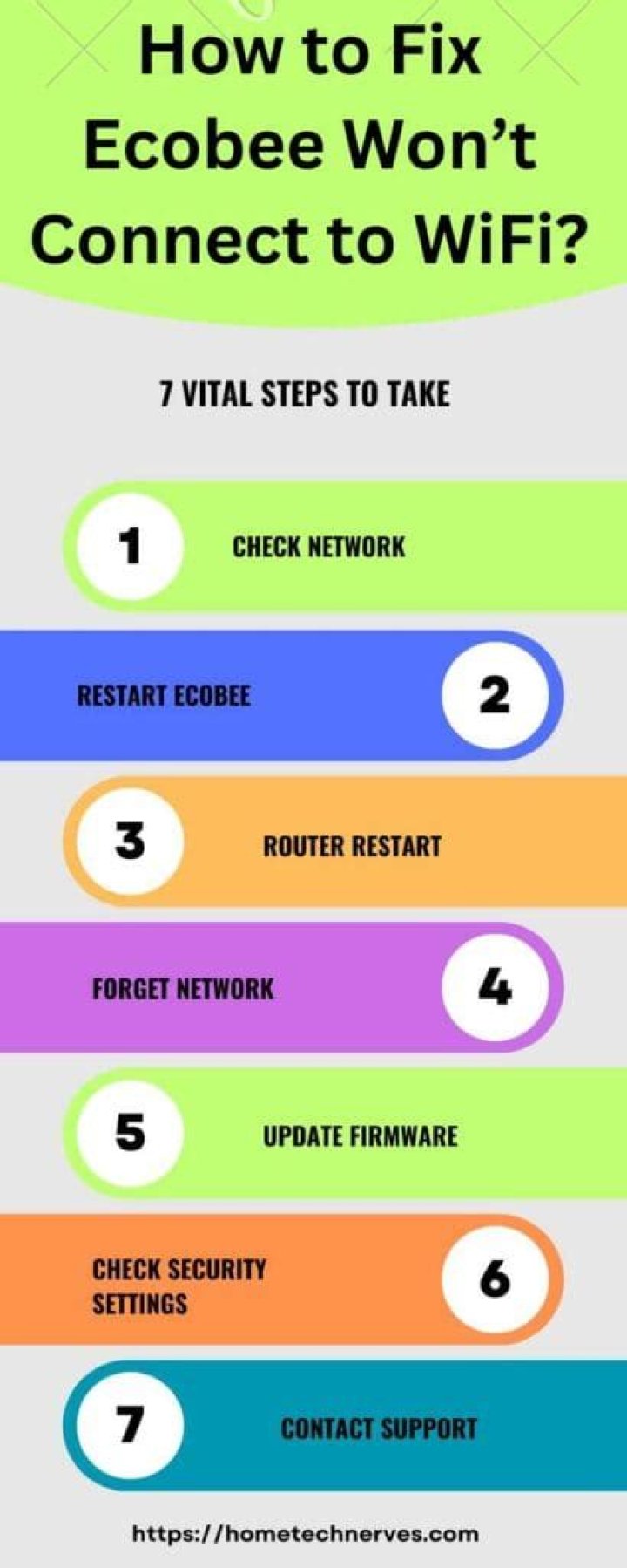 Troubleshooting. 1.) Try power-cycling the ecobee and the router by unplugging the router and removing the ecobee from the wall. … Once the router is back up and running, place the ecobee back on the wall and wait for it to finish powering up—it should reconnect to Wi-Fi on its own.
